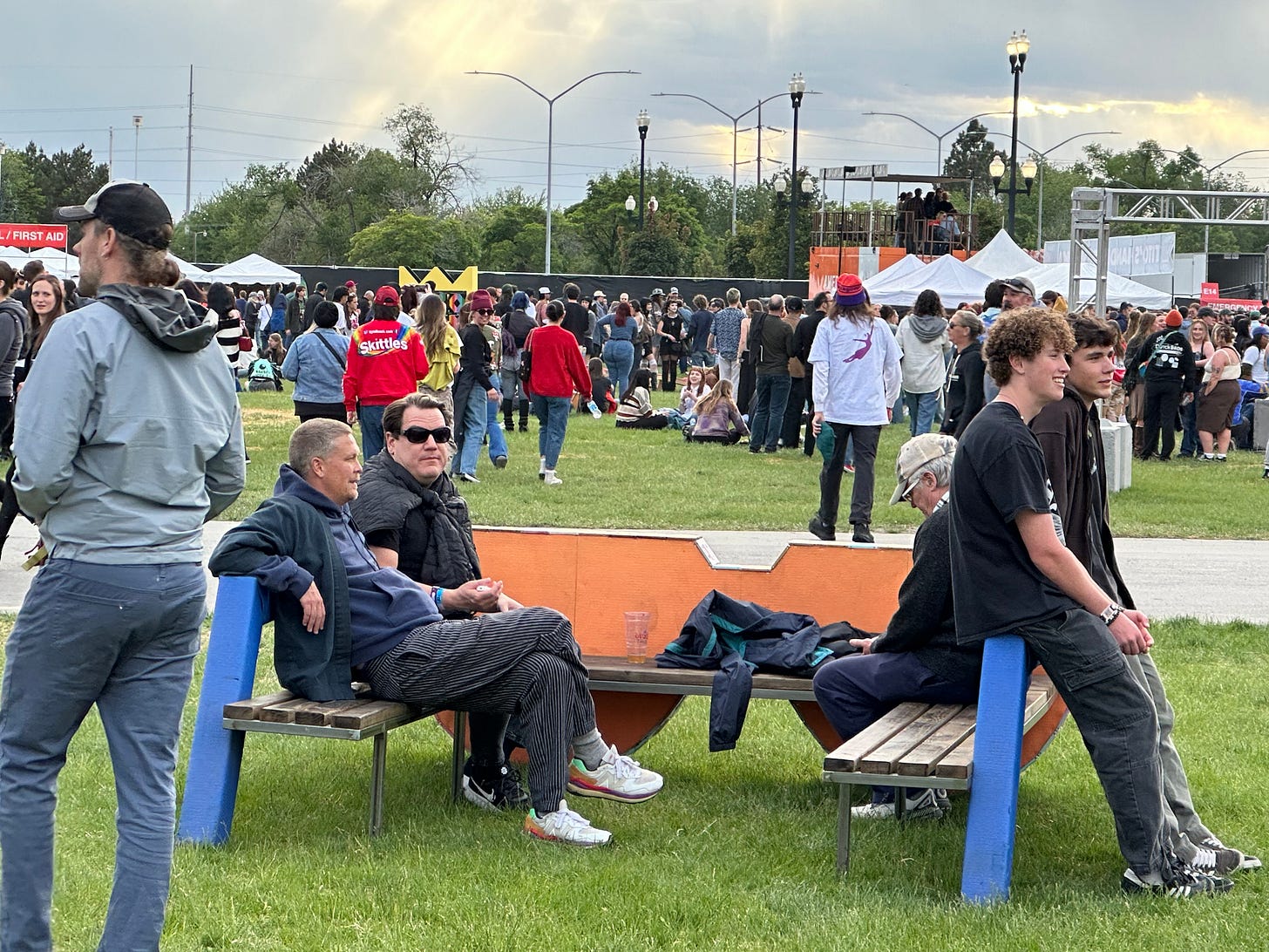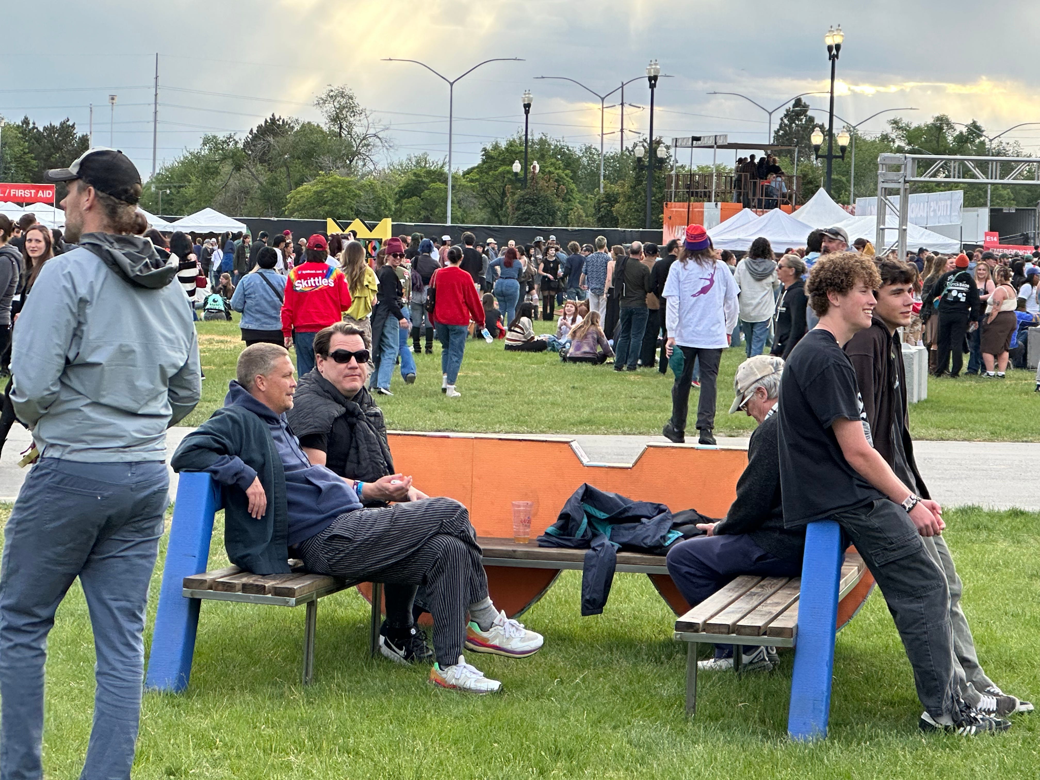 At Kilby Block Party, the benches were the rendezvous point and the steez was directionless. The steez was like the scent of the [redacted] thrift store in Dillon, MT: saturated and sensitive. I have my opinions, but they all seem beside the point. Pictured here, sitting in the sunglasses-themed bench on Day 1 of the festival, resting the dogs before New Order graced the stage, a generational grouping of fellas. Apropos of experience, I’d recommend the following bands to see live: Black Country, New Road, Been Stellar, Weezer, Justice, Momma, Wishy, Built to Spill, and Geese. I’d also recommend going to music festivals with your friends.