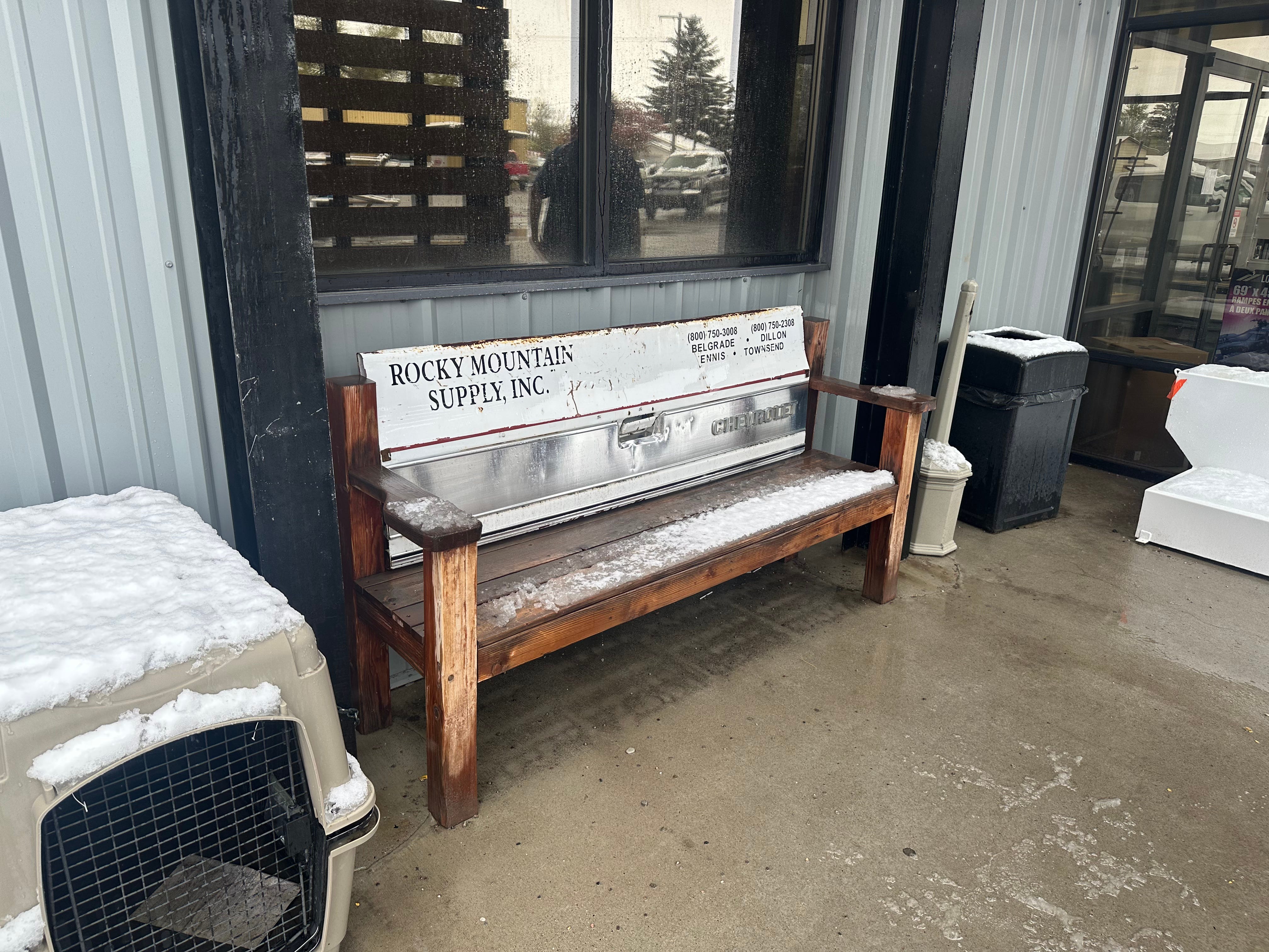 Once again, the wheels were turning on I-15 and took a minute to cool down in Dillon, Montana. And like anyone who's ever travelled through Dillon, Montana, or travelled at all, you’ll return to the same gas stations. This stop, Rocky Mountain Supply, Inc, which is essentially a mini-Fleet Farm that sells diesel out front, does the job. The shop tricks you with its relative gas station grandness that it is doing anything particularly well. On the south side of the building, next to the dog kennel, is a hybrid. A wet wood base gives way to a chrome Chevy lumbar system with signage to boot. The tales this tail could tell.