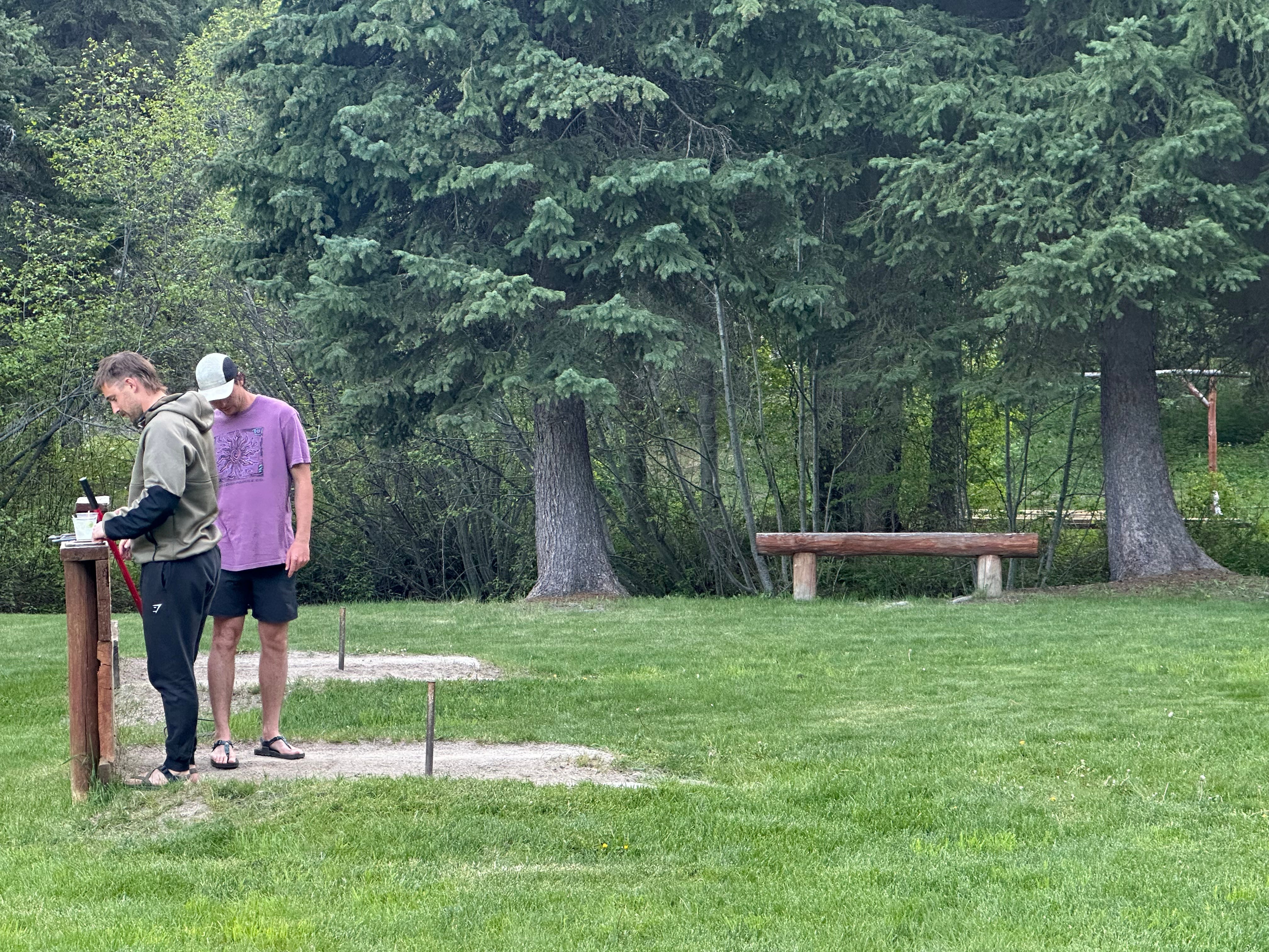 Stoke carried us through the day like a waiter and a tray. Stoke sent us down Lochsa Falls a la raft and sang a sweet song. Stoke chaperoned us along US-12, collaborated with the highway patrolman looking for a gander, and delivered us to the Jack Saloon, where the team got antsy between ordering food and receiving the food, so an incomplete game of horseshoes was played. Lining the lawn, never the main character but essential for plot progression, were delightful half-slices. Stoke was a lovely passenger.