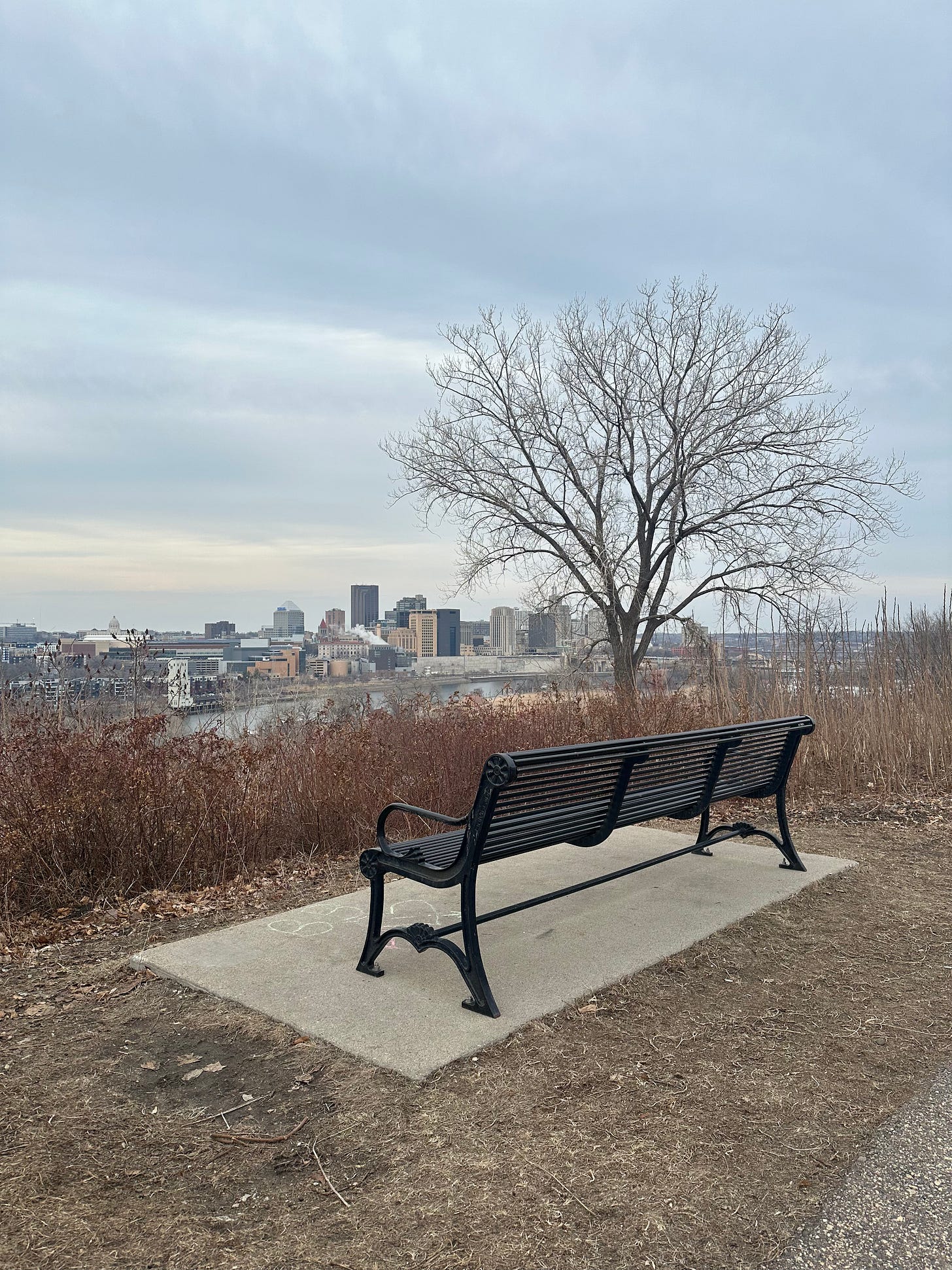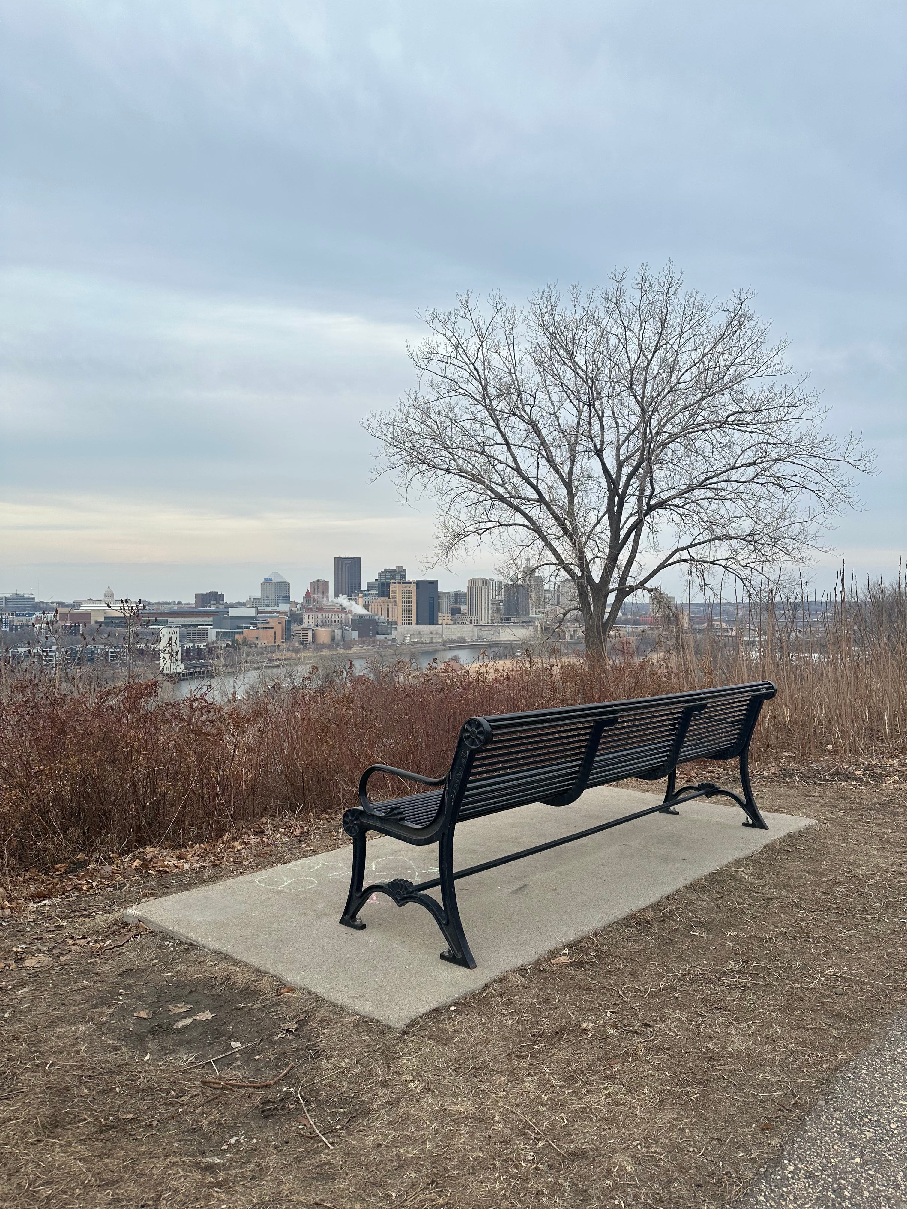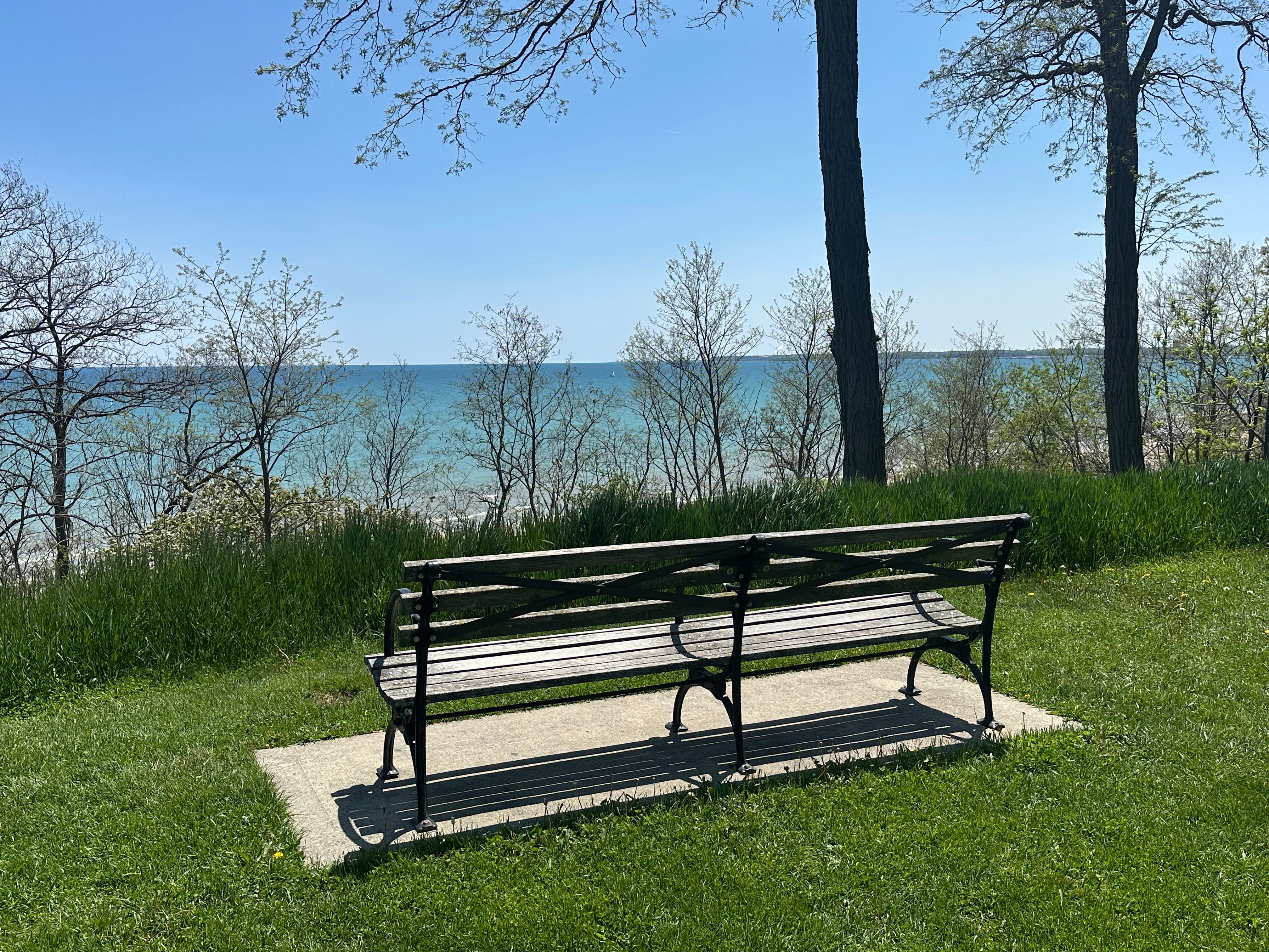 Divine scenes at Lake Park, rolling time off my sleeve, gradient blues from shore to ceiling. In loving memory of Stephanie Wasielewski, on a production prolific in those parts, the epitaph spells Virgil, appropriate for the season it finds us in: